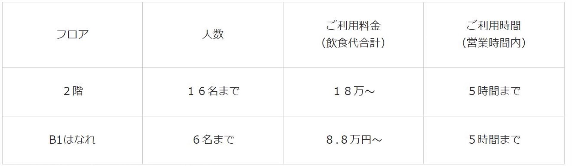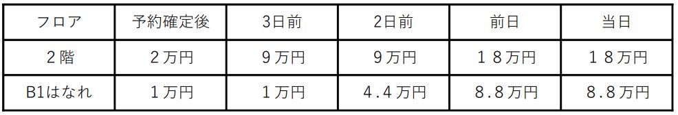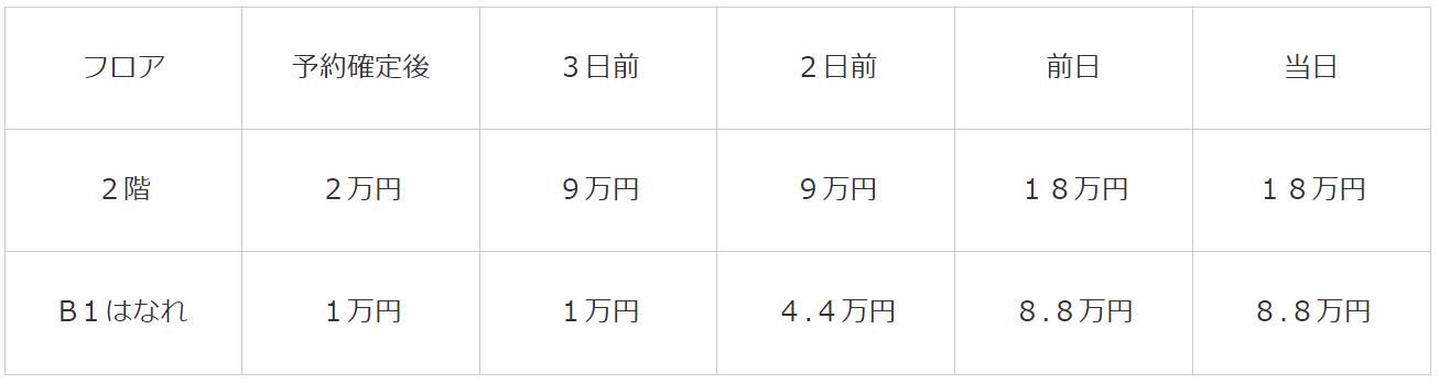 キャンセルポリシー ※貸切の為、予定や人数が確定の上ご予約ください
